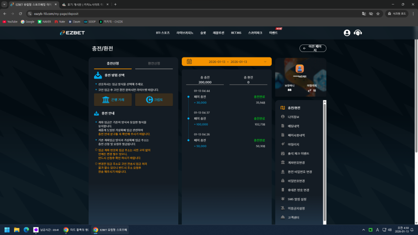 이지벳 오늘도 다펐지만 충전 빠르고 콤프 달달하네요